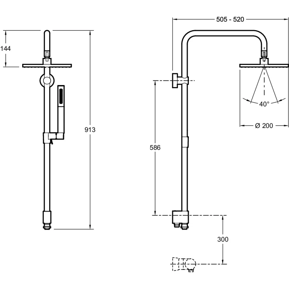 - Размер верхнего душа: 20 см