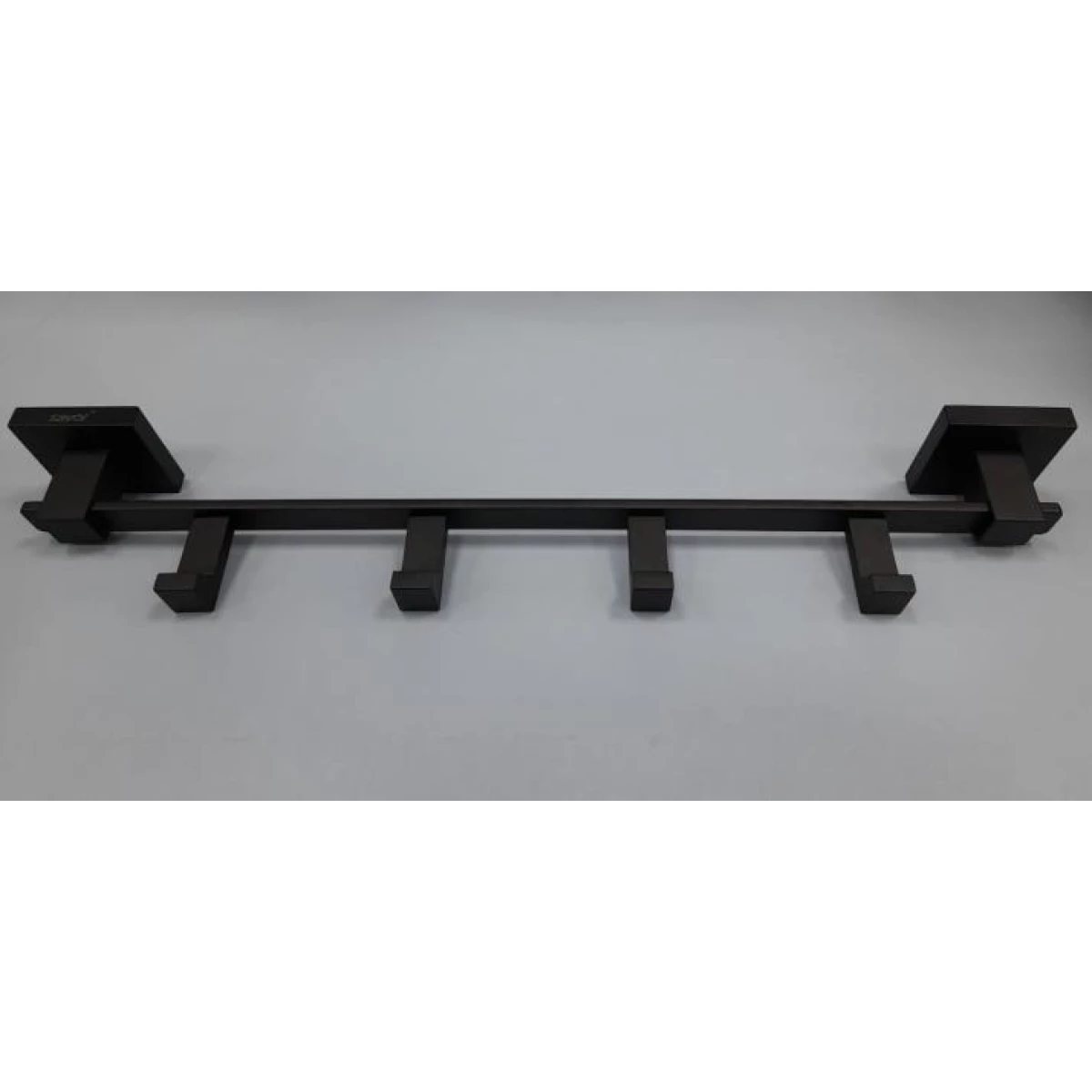 Крючки Savol 65H S-06574H имеют черный цвет, который легко впишется в любой интерьер ванной комнаты. Ширина планки составляет 8 см, а длина - 43,8 см, что позволяет разместить на ней достаточное количество предметов.