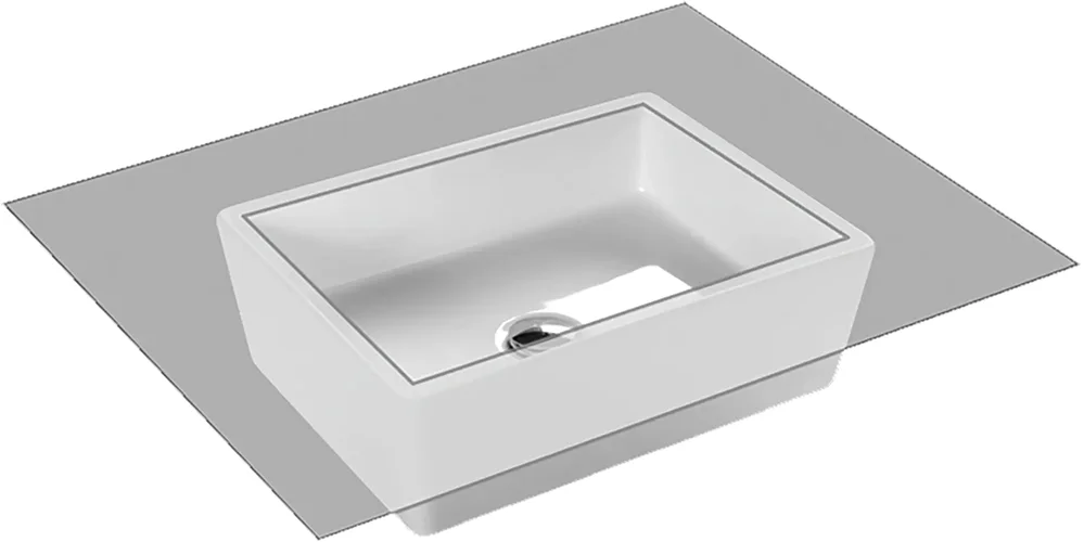 Встраиваемая раковина прямоугольной формы. Раковина без отверстия под смеситель. Данная модель устанавливается снизу.