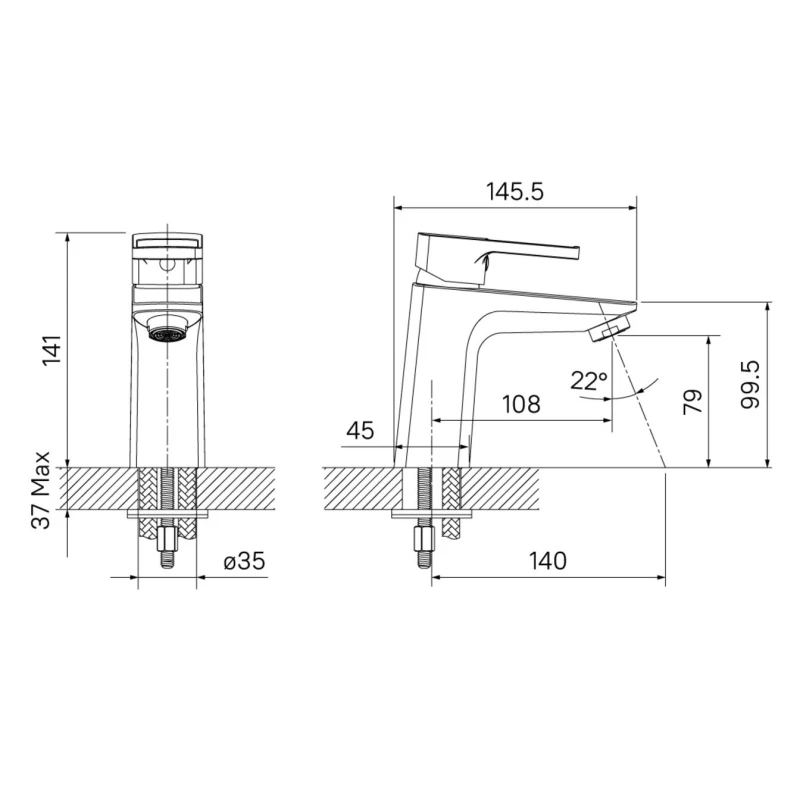- Длина излива: 10.8 см