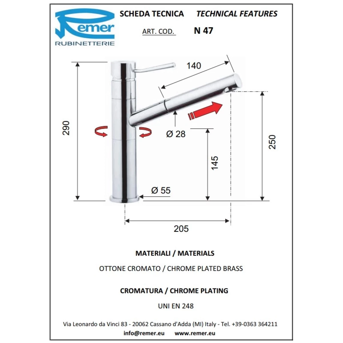 Смеситель для кухни Remer SR543 смеситель для кухни remer sr543