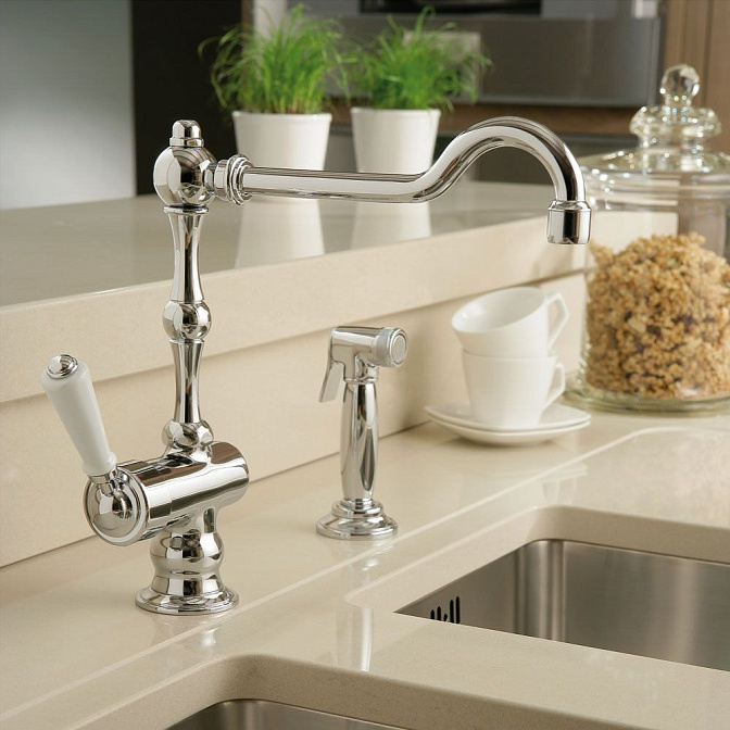 О товареСмеситель для кухни с душем THG Bastide выполнен в классическом стиле с хромированным покрытием, что придаёт ему элегантный и утончённый вид. Изящные формы и плавные изгибы в дизайне делают этот смеситель отличным выбором для интерьеров, оформленных в классическом, винтажном или ретро стилях. Ручка управления дополнена керамической вставкой, что подчёркивает традиционный характер смесителя и добавляет удобства в использовании. Смеситель также оснащён удобным душем с лаконичным дизайном, который сочетается с основным корпусом. Хромированная поверхность не только придаёт смесителю блеск, но и обеспечивает его долговечность и стойкость к коррозии. Это идеальное решение для кухни, где акцент сделан на классический стиль и комфорт.