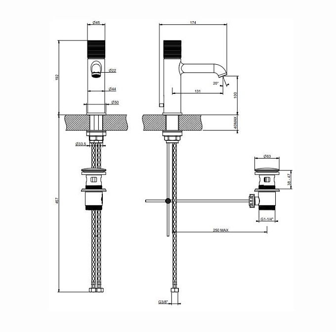 Смеситель для раковины вынос 13,1 см, с донным клапаном