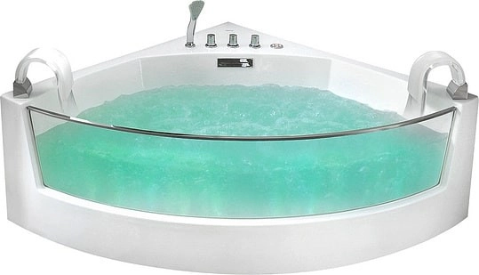 В комплекте: каркас, смеситель с изливом, душевая лейка, слив-перелив, подголовник, хромотерапия и аэромассаж.